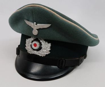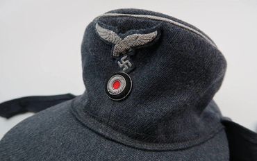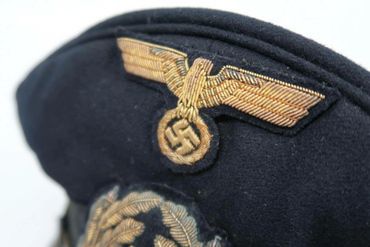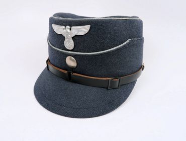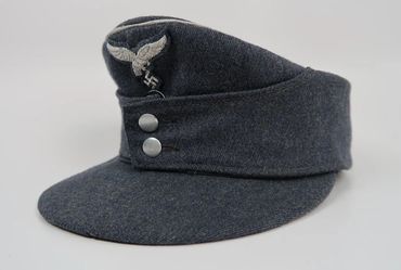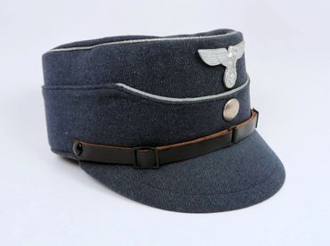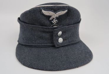 Luftwaffe officer's M43 field cap with bullion eagle and cockade. It's common to find upgraded caps that sport enlisted rank, machine-woven insignia; true officer's caps are another story. It took me YEARS to find an real one. A truly beautiful piece of rare headgear!