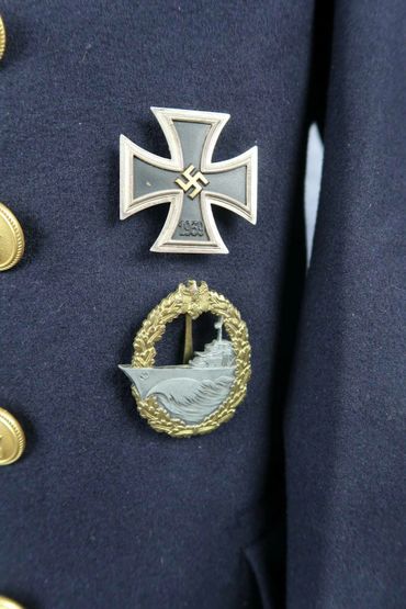 Arguably one of my favorite pieces in my collection is this stunner of a reefer jacket. I found it exceedingly difficult to not only find an original line officer but also with loops for a Spain/German cross. The loops under the EK_1 area are so small that only a U-Boat badge can fit there and that makes it all that much better for me.