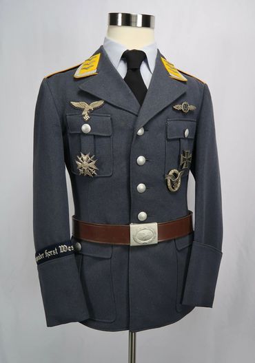 This exact uniform is shown in the contents section of THE GERMAN LUFTWAFFE PILOT and COMBINED PILOT and OBSERVER BADGES OF WORLD WAR II by Sebastien Talbot. Geschwader Horst Wessel (Zerstörergeschwader 26) pilots were known to have flown the BF-110 and participated in the battle of Britain.