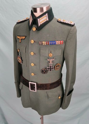 This is a General Göring Regiment Fleigerblouse. While this piece is unnamed, the presence of the cloth German Cross in Gold narrows it down to only a handful of individuals which held this rank. Currently being researched.
