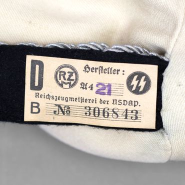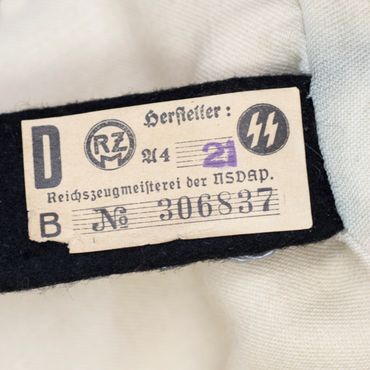 This originally came out of a Tennessee estate and was brought back by a 45th Infantry soldier. It took me many years to convince the gentleman who got it out of the woodwork to part with the jacket but eventually we agreed to a price which was fair to the both of us. Unfortunately it is not named. The RZM tags on the underside of the boards are sequentially similar which is interesting to note. I have the US Vet's Ike jacket that brought back this SS General's uniform and some other bits and these items will always stay together. The display looks marvelous with a pair of white piped breeches and the matching visor.